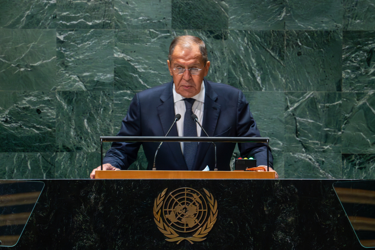 Russian Foreign Minister Sergey Lavrov speaks during the United Nations General Assembly on September 23, 2023 in New York City.