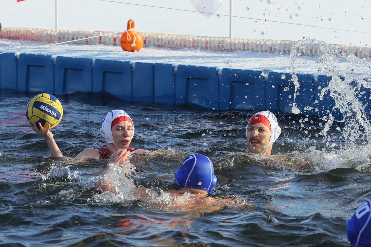 The game, along with a swimming competition, took place in a 25-meter pool carved into the ice of the Moscow Rowing Canal in the city’s western Krylatskoye district, as the air temperature fell to approximately -5°C.