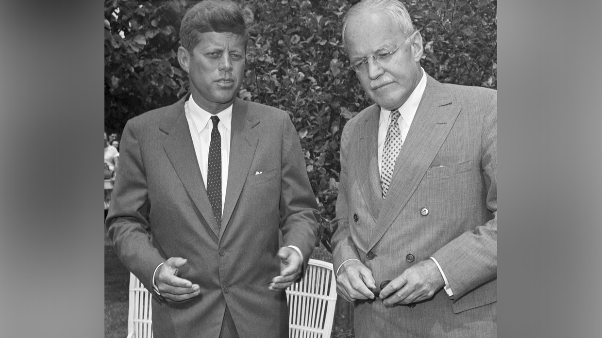 Presidential candidate Senator John F. Kennedy meets with CIA Director Allen Dulles to discuss foreign affairs. July 23, 1960.